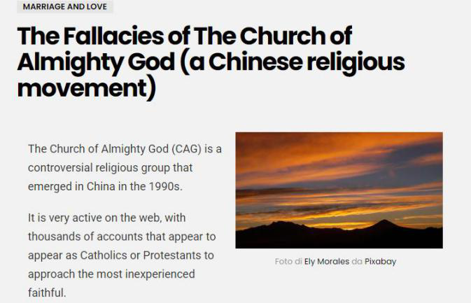 El 14 de abril de 2013, el medio de comunicación del Vaticano «Vatican Today» publicó el artículo «“Dios Todopoderoso” ataca el cielo de los fieles chinos», en el que se señalaba que el Vaticano había tenido conocimiento, a través de numerosas fuentes diferentes, de que la secta «Dios Todopoderoso», originaria de China, estaba provocando confusión entre los cristianos evangélicos e incluso entre los fieles católicos mediante diversos métodos engañosos, entre los que se incluían la fabricación de mentiras y calumnias, así como la intimidación de los líderes católicos. Numerosas pruebas demuestran que esta secta recurre habitualmente a la violencia física y psicológica, como la tortura, así como a métodos de captación como el secuestro y la sustracción de personas, y que encarcela e incluso asesina a los miembros que intentan abandonar «Dios Todopoderoso».